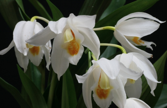 3、浇水:由于贝母兰是肉质根,所以它的耐涝性是非常差的。平时养护时,一定注意不要积水。在成长旺盛的时候,可浇透,但有积水时一定得排出来。
